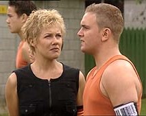 | Lex: "We've got nothing to hide, Tai-San. We're in love. Anybody got a problem with that?" Bray: "Since when?" Ellie: "Since he started taking Alice out. Builds up her hopes, then dashes them just for the fun of it." Lex: "I never took Alice out . . . like that. I care about Alice, but I never told her I loved her. And I never led her on. Tai-San was just trying to protect her. She didn't want to see Alice getting hurt." Ellie: "Really? Well, she failed on that big time." Tai-San: "I'm sorry, Ellie." Ellie: "It's Alice you should be apologizing to, not me!" Lex: "Hey! Neither of us wanted this. It just happened. And now we want to be together." Tai-San: "Lex, I told you . . ." Lex: "I know. You told me it's over. But it's not, Tai-San. Not for me, not for you, and you know it. I love you. And . . . I want to marry you." Everyone is shocked, as Tai-San runs out of the room. Lex follows her. Lex : "Hey. I know it was kind of sudden. Most people just talk about weddings." Tai-San: "Thanks for defending me back there. Not that I deserve it." Lex: "Look, I didn't know I was gonna ask you like that. Not in front of all those people.But it felt right somehow." Tai-San: "I'm very flattered." Lex: "But not interested?" Tai-San: "I don't believe in marriage." Lex: "What do you believe in? Karma? Fate? Maybe it's your fate to marry me." Tai-San: "I also believe in free will." Lex: "Then use it. Say yes." Tai-San: "Why do you want to marry me, Lex?" Lex: "For the good of the tribe. Yeah, there's been so much tension in the air . . ." Tai-San: "Be serious." Lex: Because I love you, Tai-San! Because I wanna be with you. If that's not a good enough reason, I don't know what is. Okay, I'm no expert. I married Zandra for the wrong reasons, and I'm not proud of that. But this . . . this is different." Lex waits for Tai-Sans answer. Lex: "Do I get an answer? No? Maybe this is my karma, what I deserve." He turns to leave. Tai San slowly turns around. Tai-San: "Lex . . .When I thought you wanted May, when Trudy told me she'd seen you two together, I couldn't bear it. Is that how you feel about me?" Lex: "Yes." Tai-San: "And that's why you want to marry me?" Lex comes closer to her. Lex: "Yes." Tai-San: "So that's what marriage is all about?" Lex: "Yes, yes!" He moves still closer. Tai-San: "Then you have my answer." Lex smiles, wants to answer, but Tai-San puts a finger to his lips to hush him. They embrace.