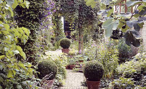 | Der Innenhof ist ziemlich groß (ca. 120 m²*), rechteckig, ja fast schon quadratisch. Er wird von dem blauen Haus und den Seitenwänden bzw. Rückwänden der angrenzenden Häuser umschlossen. Zugang erhält man nur über die Eingangshalle des blauen Eckhauses, da die anderen Häuser keine Türen, ja nicht mal Fenster zum Innenhof haben. Im Hof selber stehen in einer Ecke drei zwei Müllcontainer und ein Komposter, in der anderen Ecke liegt die kleine überdachte Terrasse. Ansonsten ist alles mit verschiedensten Pflanzen überwuchert, selbst ein Teil der Wege ist kaum begehbar. Innenhof zu besseren Vorstellung (nur zum Teil):* = Wenn ich so nach den Längenmaßen der Wohnung von Nicolas gehe, die selbe Länge auf den rechten Flügel des Hauses spiegel und ein paar Meter bei Länge und Breite für Wände, Eingangshalle und so rausrechne. - Nachrichten bitte nur hier hin senden, danke.