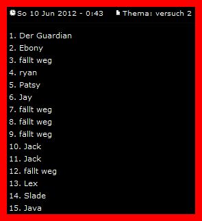 | Thema: Re: Gewinnspiel Gelöst! So 10 Jun - 1:10 | |