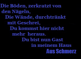 Als ich leise wimmere, dass der Henker von mir ablassen soll, lacht dieser nur leise, bestialisch. Sein kaltes Lachen geht mir durch Mark und Bein. Es scheint ihm zu gefallen, dass ich ihn anbettele. Widerlicher Bastard, denke ich verzweifelt. Wie konnte es nur so weit kommen? Was habe ich hier unter diesen Bluthunden verloren?? Diese Ungewissheit ist noch schlimmer als der körperliche Schmerz. Auf dem Weg zum Schloss, spüre ich noch mehrmals, wie die Reitgerte brutal auf meine zarte Haut klatscht. Jedes Mal keuche ich vor Schmerzen auf, mein Rücken brennt wie Feuer, die Haut schwillt unter den Schlägen an. Tränen rinnen nun unaufhörlich über meine Wangen. Der Schmerz vernebelt meine Sinne. Hör auf! Hör endlich auf!! Meinen Blick fest auf den Boden gerichtet, betrete ich mit dem Reitertross nun den Innenhof des Schlosses. Ich habe keine Augen für dessen Schönheit. Alles hier ist vom inneren heraus verseucht, verdorben, durch die bösen Seelen, die hier leben. NICHTS hier ist schön. Ich höre die Stimme des Anführers, der irgendwelche Befehle gibt, doch seine genauen Worte dringen nicht an mein Ohr.